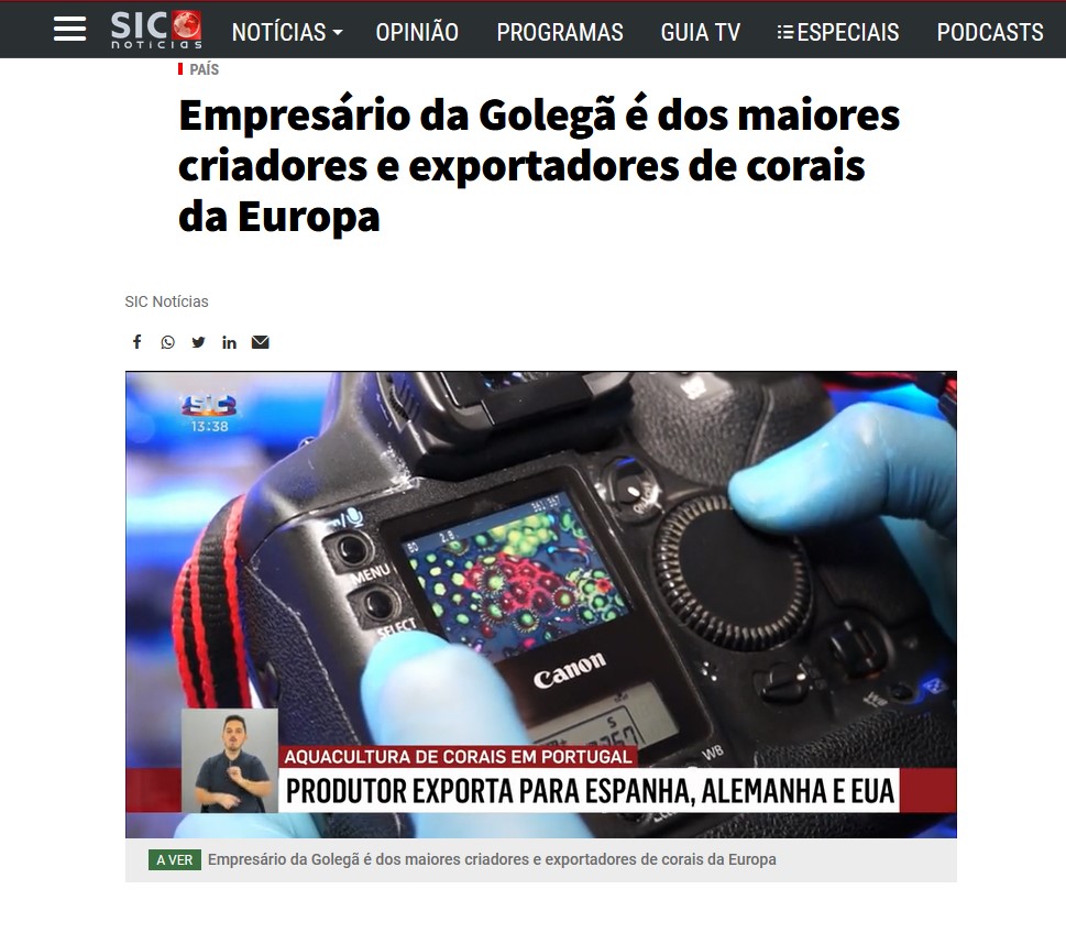“É portuguesa uma das maiores aquaculturas de corais da Europa. O projeto, desenvolvido por um empresário que esteve emigrado vários anos na Florida, está sediado no concelho da Golegã.
