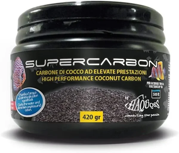 Carvão ativado de origem vegetal (componente principal: casca de côco) ativado no forno e mecanicamente processado através da modificação da sua estrutura granular. Quanto mais pequenos os grânulos, maior a performance do carbono (o melhor é de 3 a 5 mm). Este tipo de carbono tem uma estrutura que permite uma excelente filtração através dos seus micróporos.