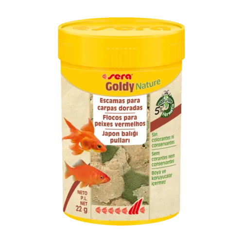 sera Goldy Nature é o alimento base para pequenos peixes vermelhos e as suas variedades de criação, tais como p. ex. Shubunkin, Cauda-de-Véu ou Sarasa e outros peixes de água fria.