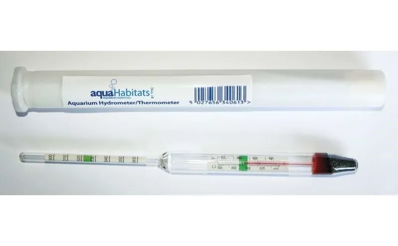 With this hydrometer and thermometer you can track both the temperature and the salt levels in your marine aquarium and not need two pieces of equipment to do it.